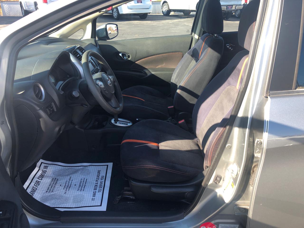 Get ready to hit the road in style with this sleek and reliable 2015 Nissan Versa Note! This sporty gray hatchback is powered by a fuel-efficient 1.6L 4-cylinder engine paired with a smooth Xtronic CVT transmission, delivering a fun and effortless driving experience. The comfortable interior features plush seating, a leather steering wheel, and convenient cruise control for those long highway drives. With its spacious cargo area and 60/40 split-folding rear seats, this Versa Note is perfect for all your road trip adventures. The exterior showcases a modern design with 16" sport alloy wheels, fog lamps, and a sporty rear spoiler. Safety is a top priority with dual-stage front airbags, side curtain airbags, and rear child safety locks. Plus, a Carfax report is available for your peace of mind. Don't miss out on the opportunity to own this well-maintained and stylish Nissan Versa Note - it's the perfect blend of fun, function, and reliability!