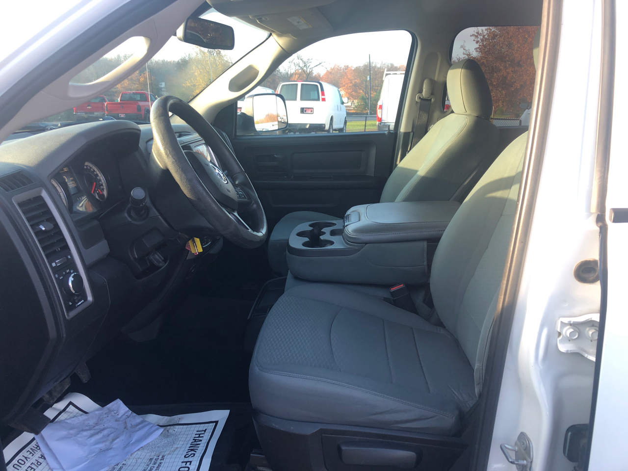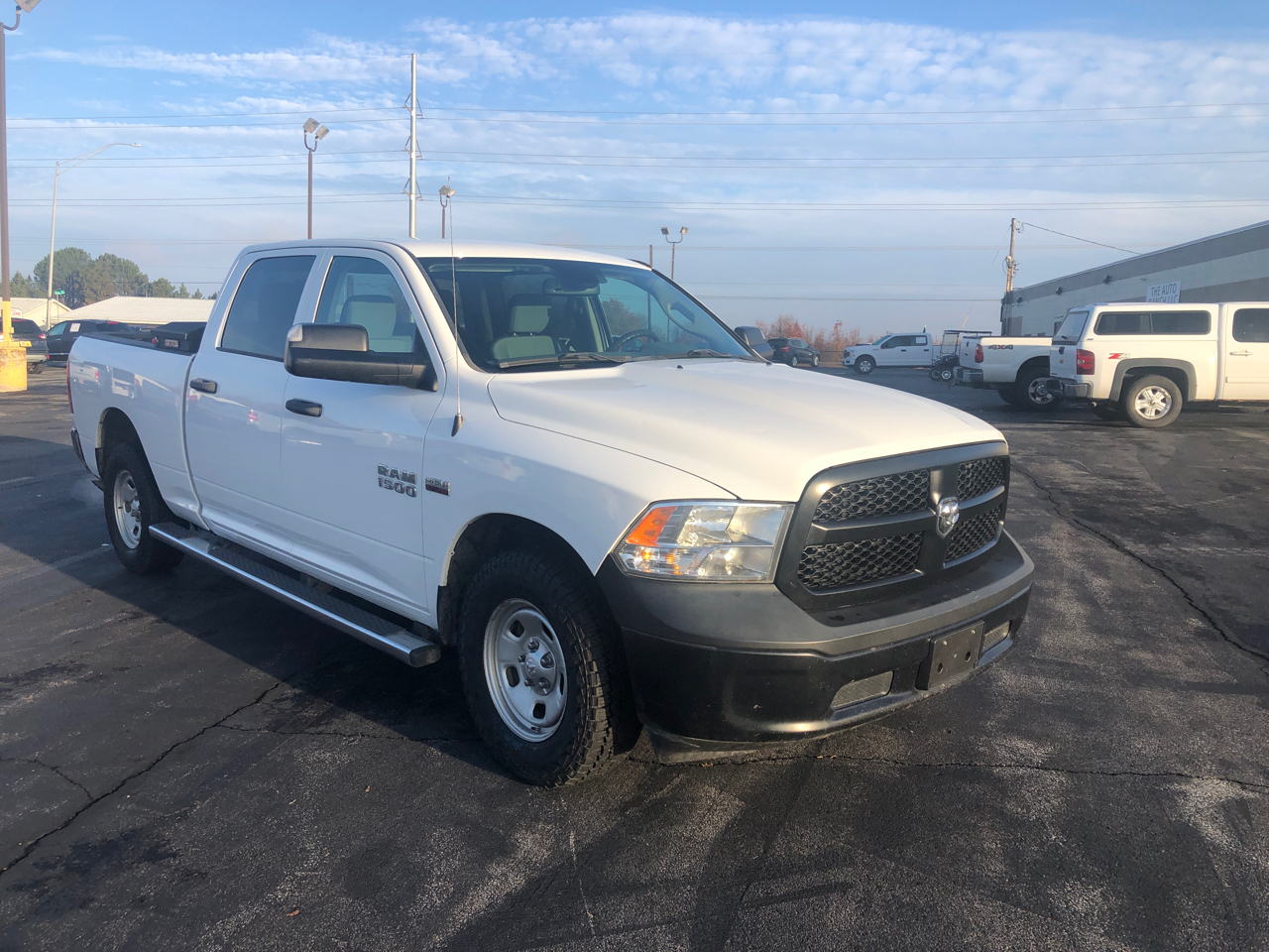 Get ready to hit the road in style with this sleek White 2016 RAM 1500! Powered by a robust 5.7L V8 HEMI engine, this truck is ready to conquer any adventure you throw its way. With part-time four-wheel drive and electronic transfer case, you'll have the confidence to tackle rough terrain or tricky weather conditions. Whether you're towing a trailer or hauling cargo, this RAM 1500 has you covered with a maximum payload of 1410 pounds and trailer wiring harness.Cruise in comfort with the 4-way driver and passenger seats, cruise control, and manual air conditioning. Plus, the CD player and 6 speakers will provide the soundtrack to your journey. Safety is a top priority with dual-stage front airbags, side curtain airbags, and rear child safety locks.